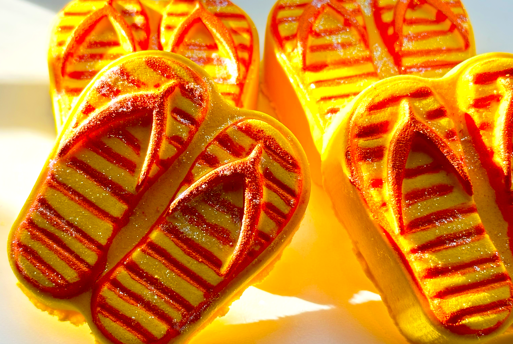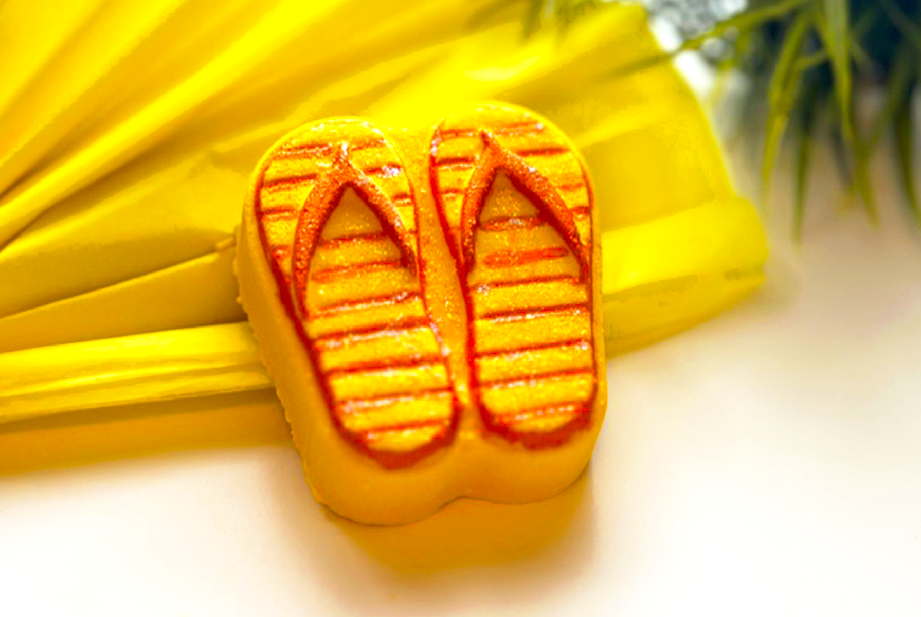 Immerse yourself in the ultimate vacation vibes by dropping one of our Flip Flop Bath Bombs into your tub. Watch as it fizzes, releasing a burst of fragrances. Let the enchanting scents of orange creamsicle whisk you away to sun-kissed beaches and palm-fringed shores. Designed in the shape of adorable flip-flop sandals, they add a playful touch to your bathing ritual.
