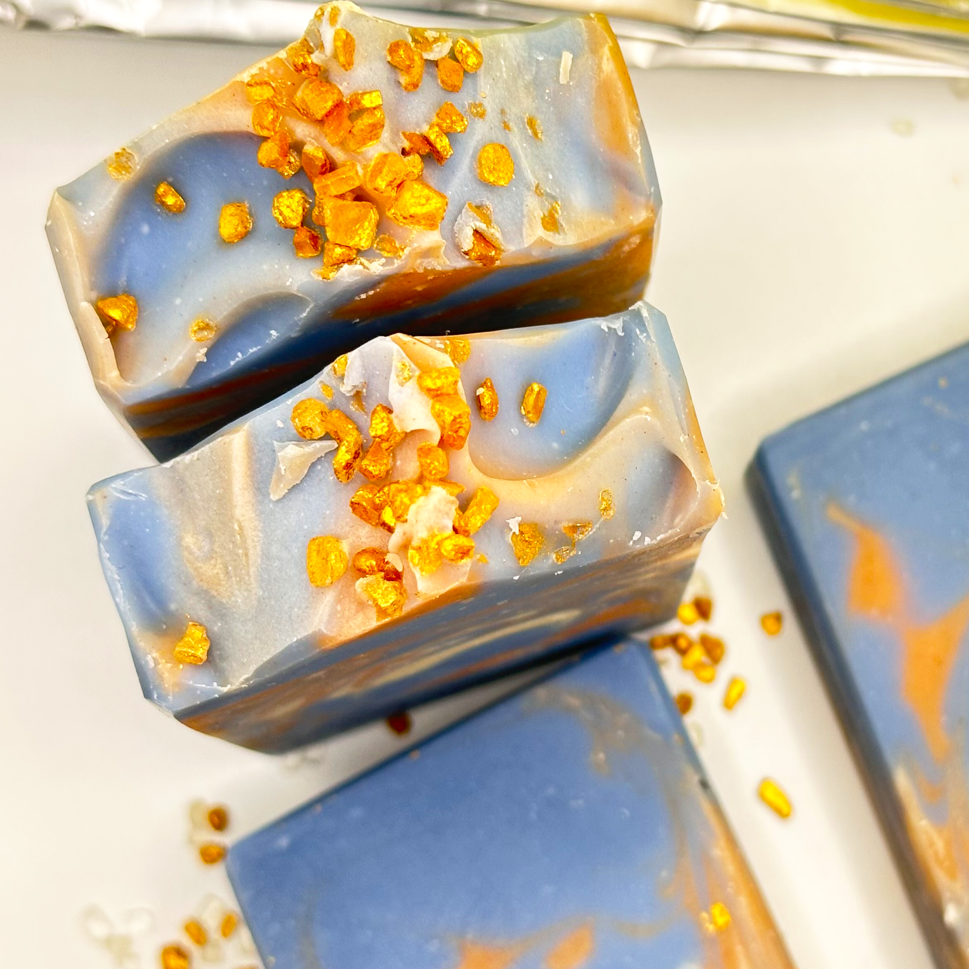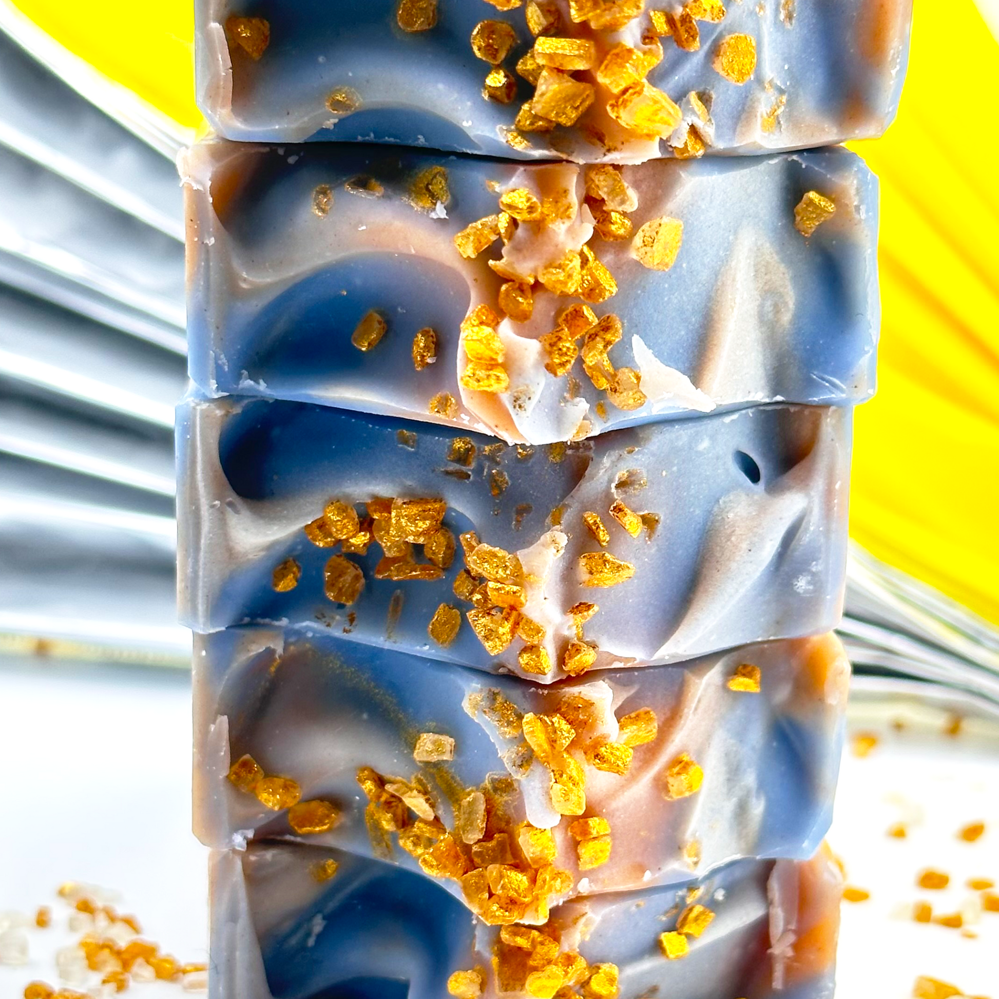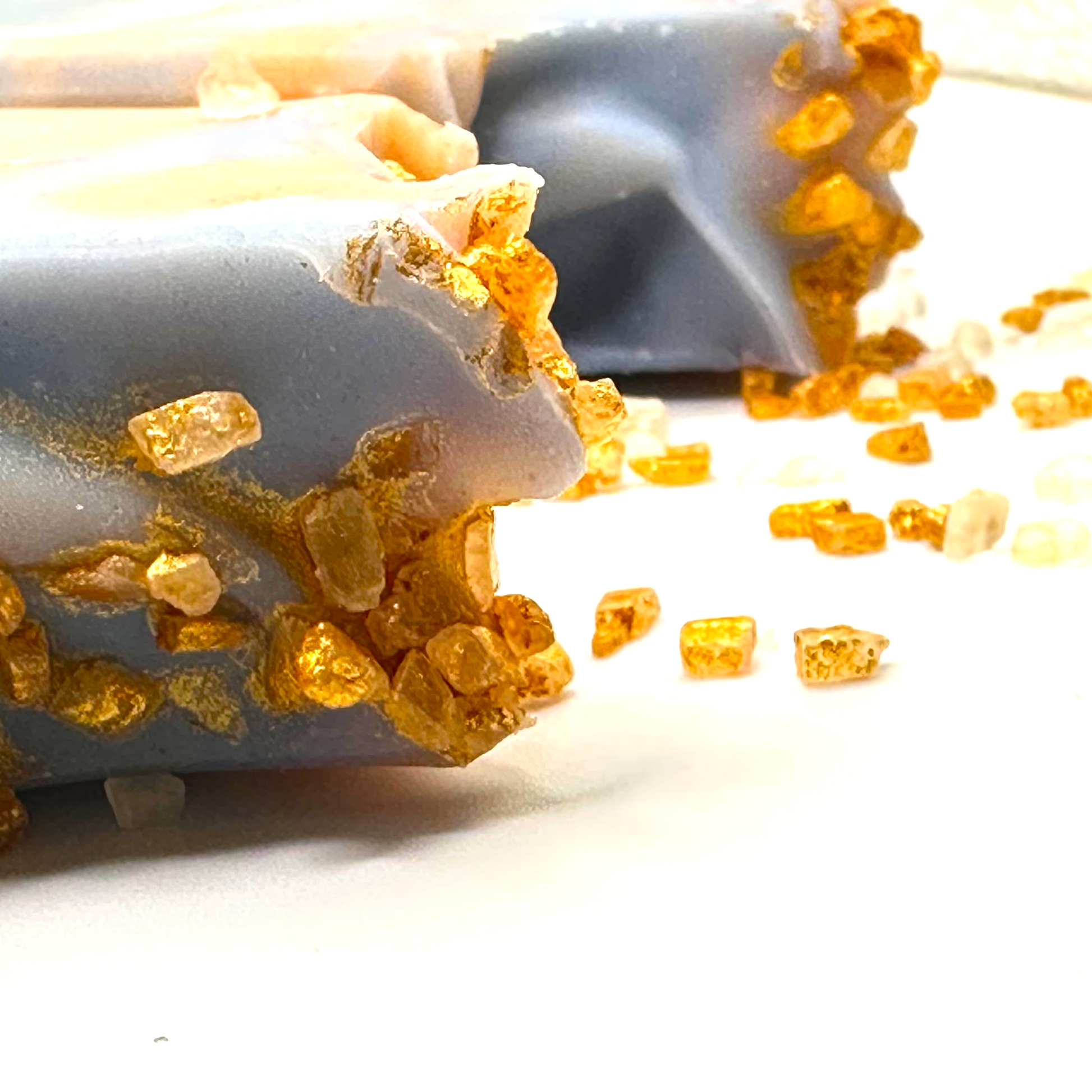 Embrace the simplicity of daily grooming without compromising on luxury. Made with Brazilian Red Clay and topped with gold dust sea salt, this soap offers a straightforward yet indulgent experience.